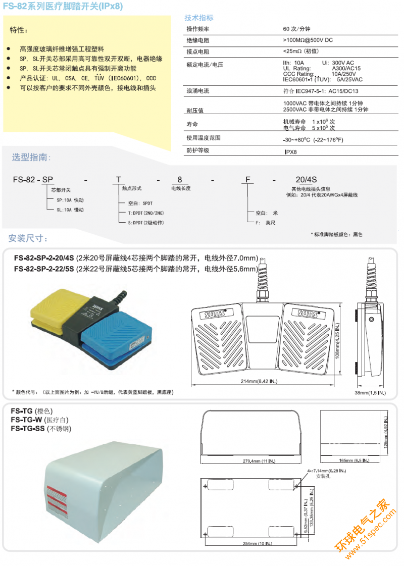 特點: | 規格: 操作頻率: 60ops/min 絕緣電阻: >100mΩ@500VDC 接點電阻: <25mΩ 額定電流/電壓 Ith:10A Ui:300VAC or 10A/15A 250VAC 浪涌電流: 符合 IEC947-5-1:AC15/DC 13 耐壓值: 1000VAC 帶電體之間持續1分鐘 2500VAC 非帶電體之間持續1分鐘 壽命: 機械壽命 1,000,000 (operations) 電氣壽命 500,000 (operations) 使用溫度范圍: -30~+80(-22~+176) 防護等級: IP20 and IPX8(for FS82-SP) |
