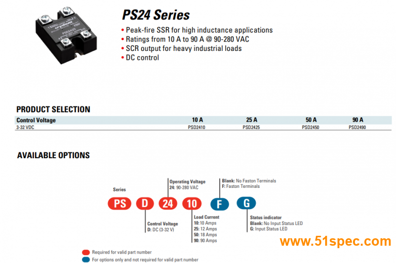 | PSD4850 | 4-32 VDC | 50 A | 48-530 VAC |