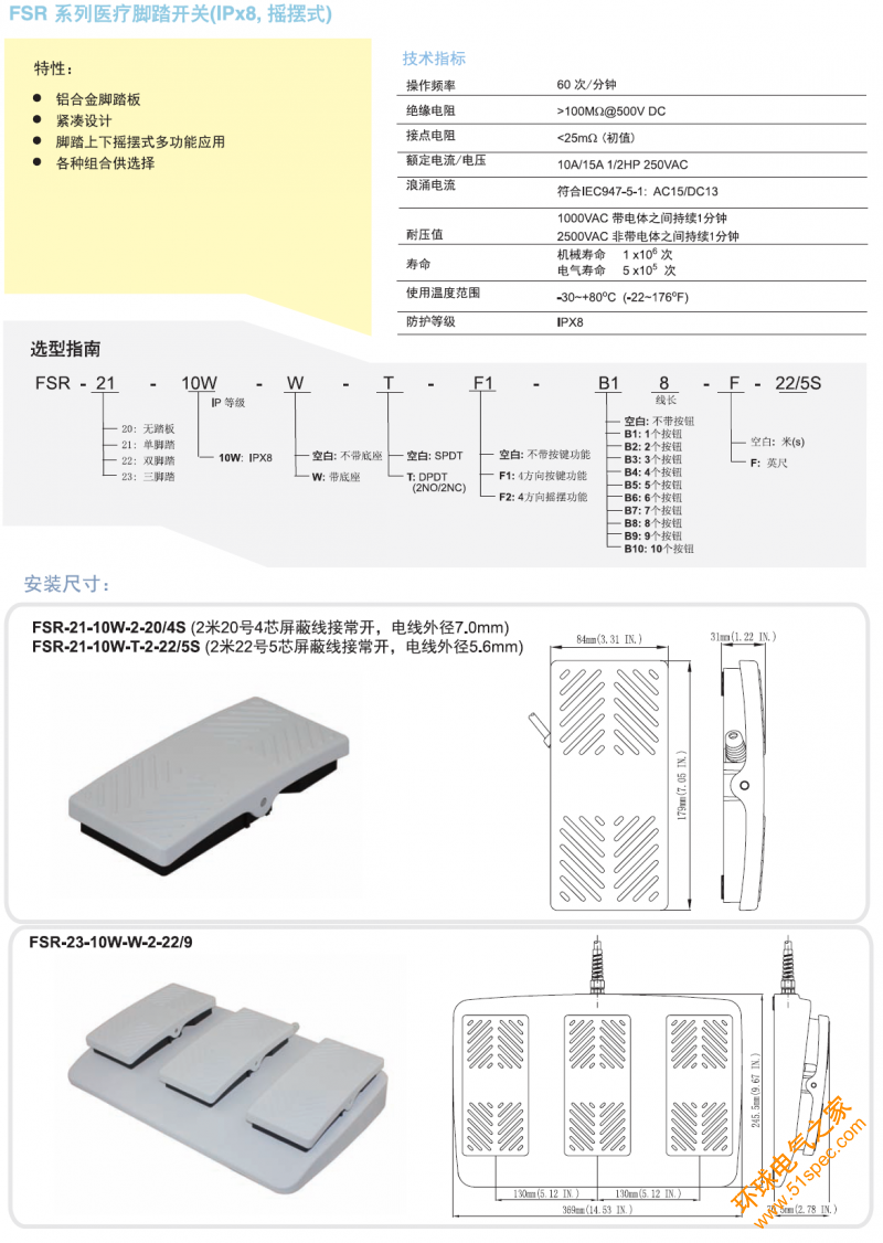 | FSR系列醫(yī)療腳踏開關(guān)(IPx8,搖擺式) |