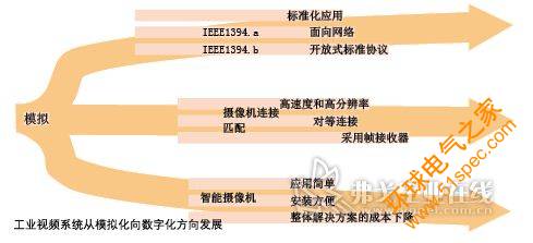 近年來,工業視頻系統的發展十分迅速。從20世紀90年代開始,許多生產廠就在其產品中應用了先進的掃描技術,使得他們生產的攝像機具有了雙重輸出功能,其圖像捕捉速度可達100幀/s。隨后,IEEE1394/1394a標準開始得到采用,這促使工業視頻系統逐漸地向著全數字化操作的方向發展。今天,IEEE1394b標準、攝像機連接和智能攝像機成為工業視頻系統的下一步發展目標。