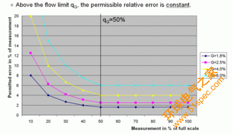 線性限值 qG: 流量限值以滿量程的百分比表示。在該值之上,允許相對誤差為常數(shù)。